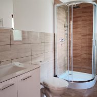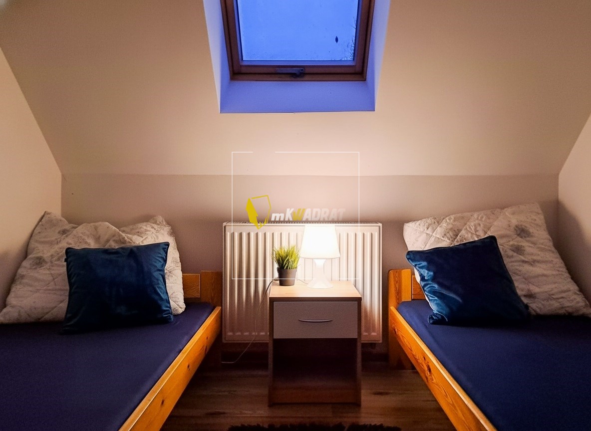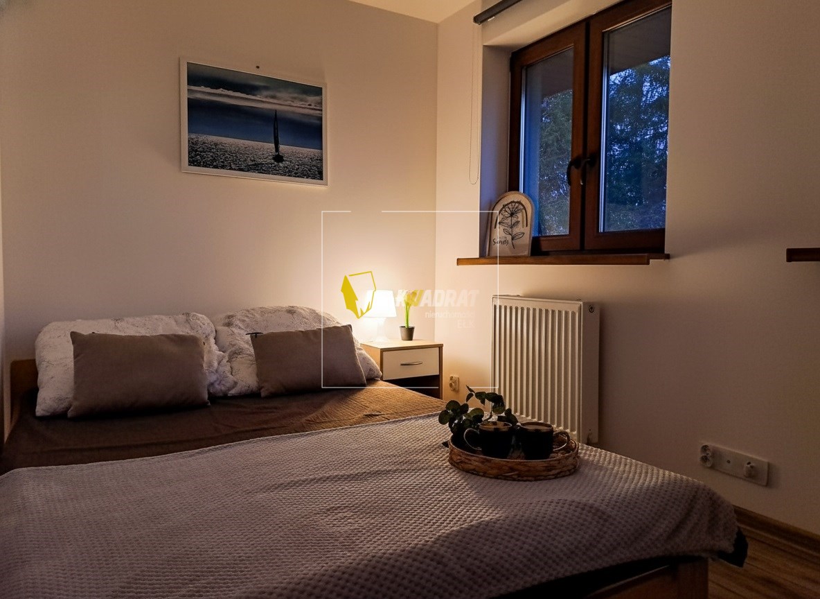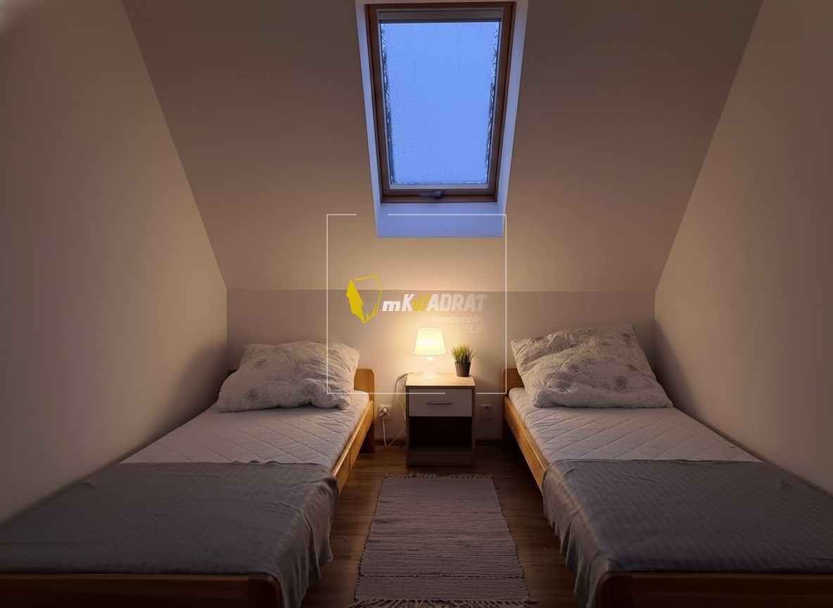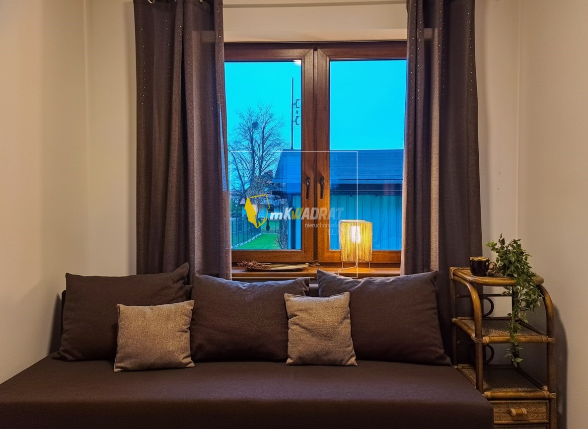 Budynek mieszkalny o powierzchni 85,78 m² oferuje komfortowe warunki do życia. Na parterze znajduje się przestronny salon z aneksem kuchennym, idealny do rodzinnych spotkań i relaksu. Na piętrze mieszczą się trzy niewielkie sypialnie, z których roztacza się widok na jezioro, dodając uroku i spokoju każdemu porankowi.