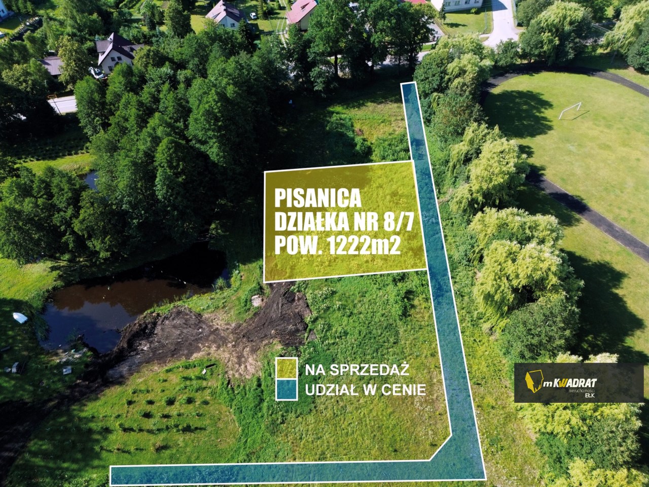 Działka budowlana 1222 m² – Pisanica, gm. Kalinowo | Media | Udział w drodze