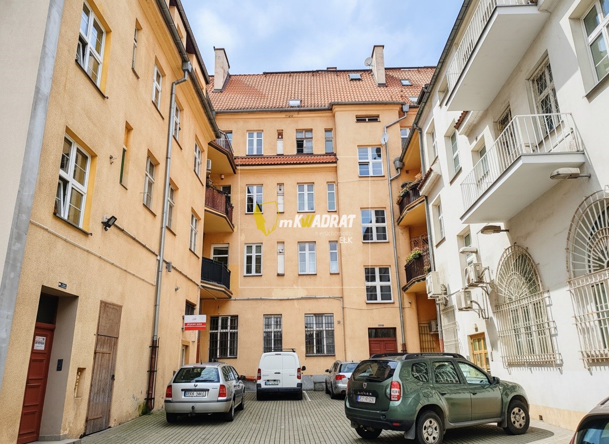 Okna oraz parking znajdują się od strony podwórza, natomiast wejście możliwe jest zarówno od podwórza jak i od strony ulicy przez klatkę schodową.