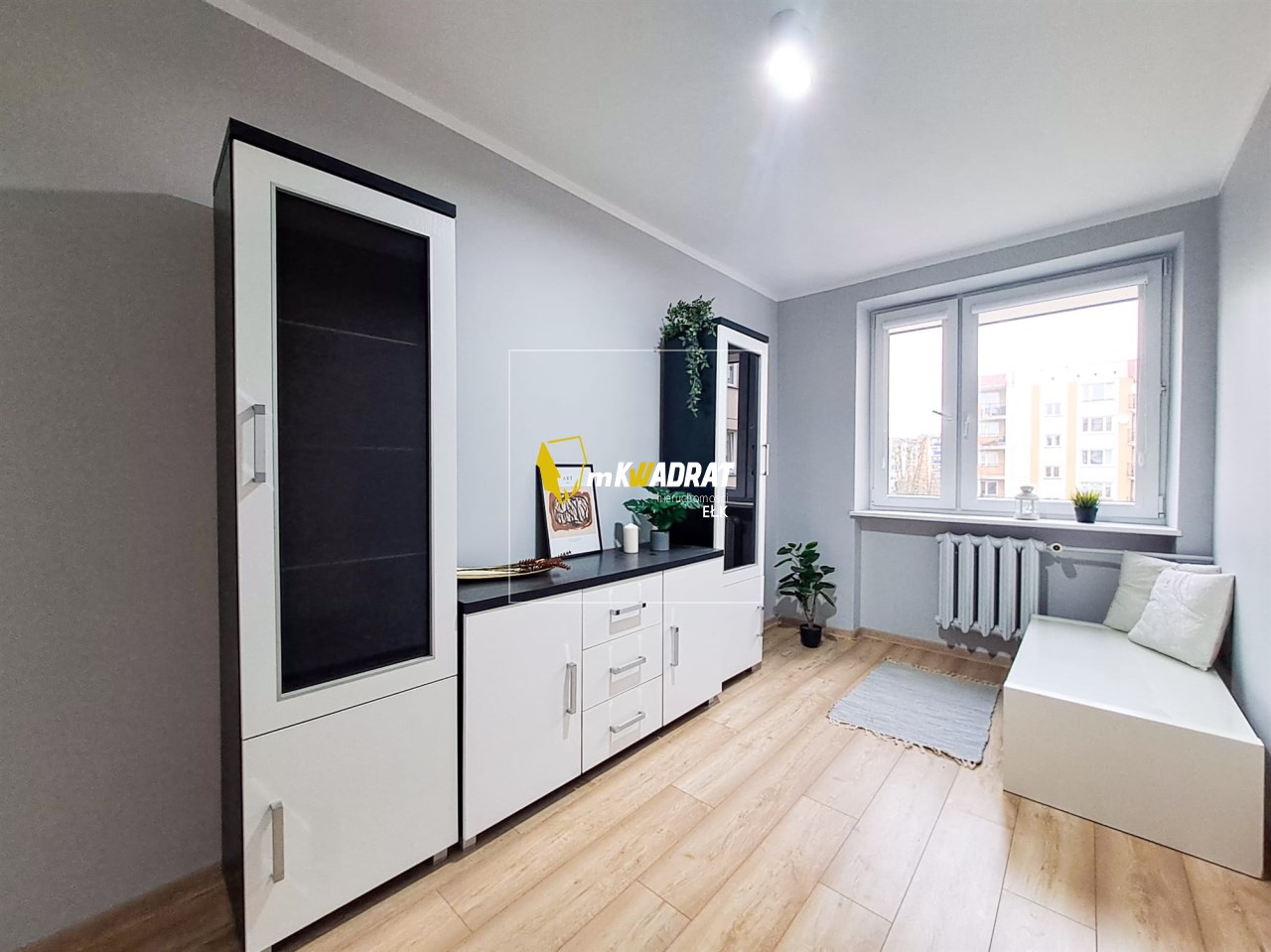 Mieszkanie bardzo ciepłe, czynsz podstawowy to niecałe 560 zł miesięcznie, Spora piwnica 5,5m2 — zmieścisz regały i rowery, Świetna lokalizacja — blisko szkoła, tereny spacerowe i Jezioro Ełckie.
